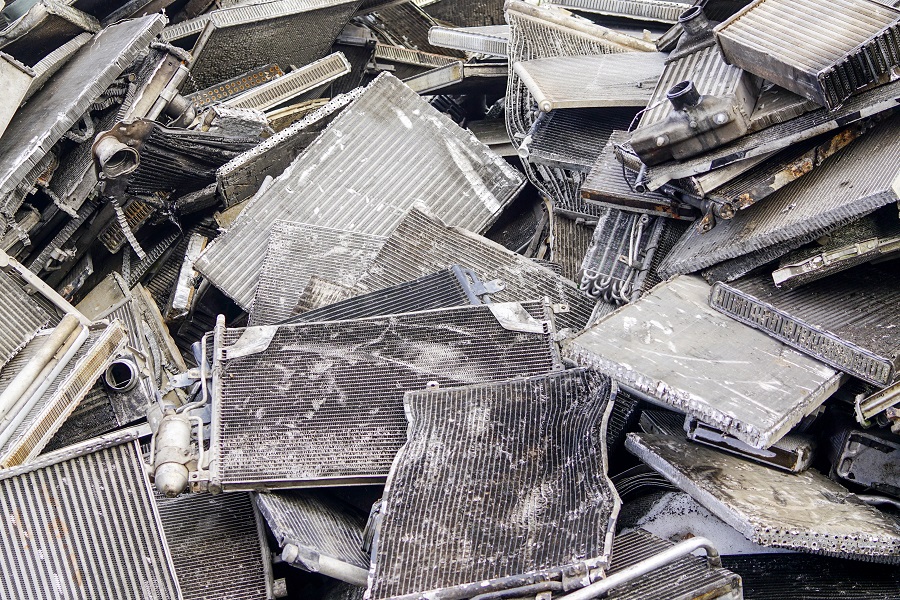 ●自動車用のラジエーターで、フィン(羽)と管ともにアルミニウム製のもの。